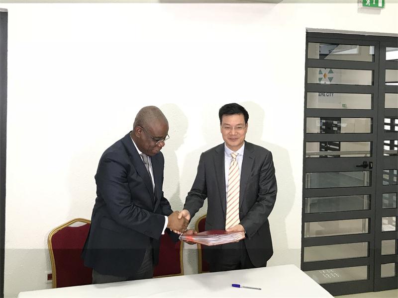 7月24日,集團(tuán)黨委書記、董事長楊宏偉與貝寧生活環(huán)境和可持續(xù)發(fā)展部部長TONATO共同簽署了貝寧市政LOT.1A、LOT.10A、LOT.14A共3個標(biāo)段的項目施工合同,合同總金額1.22億美元,約合人民幣8.3億。