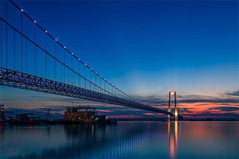 大岳高速洞庭湖大橋,懸索橋,主跨1480米,是世界第二大、國(guó)內(nèi)第一大“鋼桁梁懸索橋”,獲湖南省建設(shè)工程“芙蓉獎(jiǎng)”。