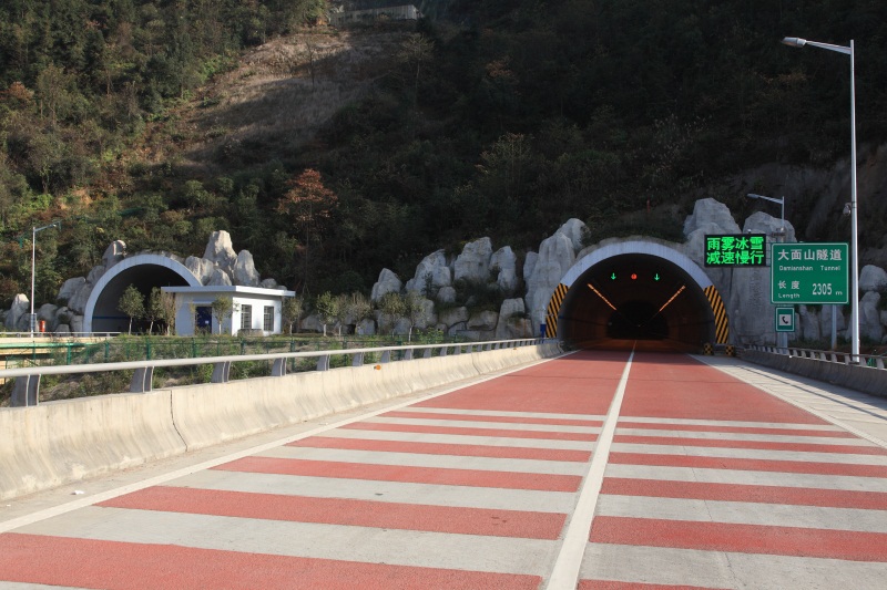 大面山連拱隧道,全長(zhǎng)2305,凈寬10.75米、凈高5.0米,2008年12月竣工通車(chē)。
