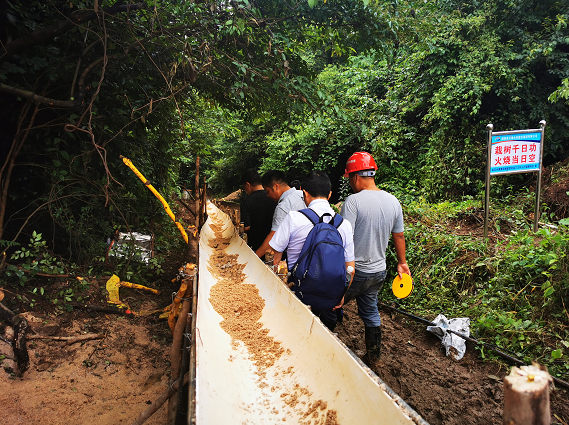 如今,從山頂往下300米長(zhǎng)的溜槽成為項(xiàng)目一道特殊的風(fēng)景線。