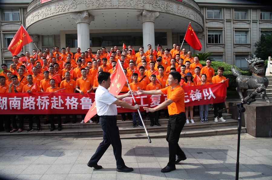 “走出國門,你代表的就是中國”。出征儀式上,湖南交水建集團黨委書記、董事長方聯(lián)民向赴格團組領隊授“赴格魯吉亞復工復產(chǎn)先鋒隊”隊旗。省國資委黨委委員、副主任張美誠,湖南交水建集團和湖南路橋集團相關領導對團組成員進行慰問,贈送防疫愛心禮包,歡送這群為國際工程履約、奔赴海外的“最美逆行者”。