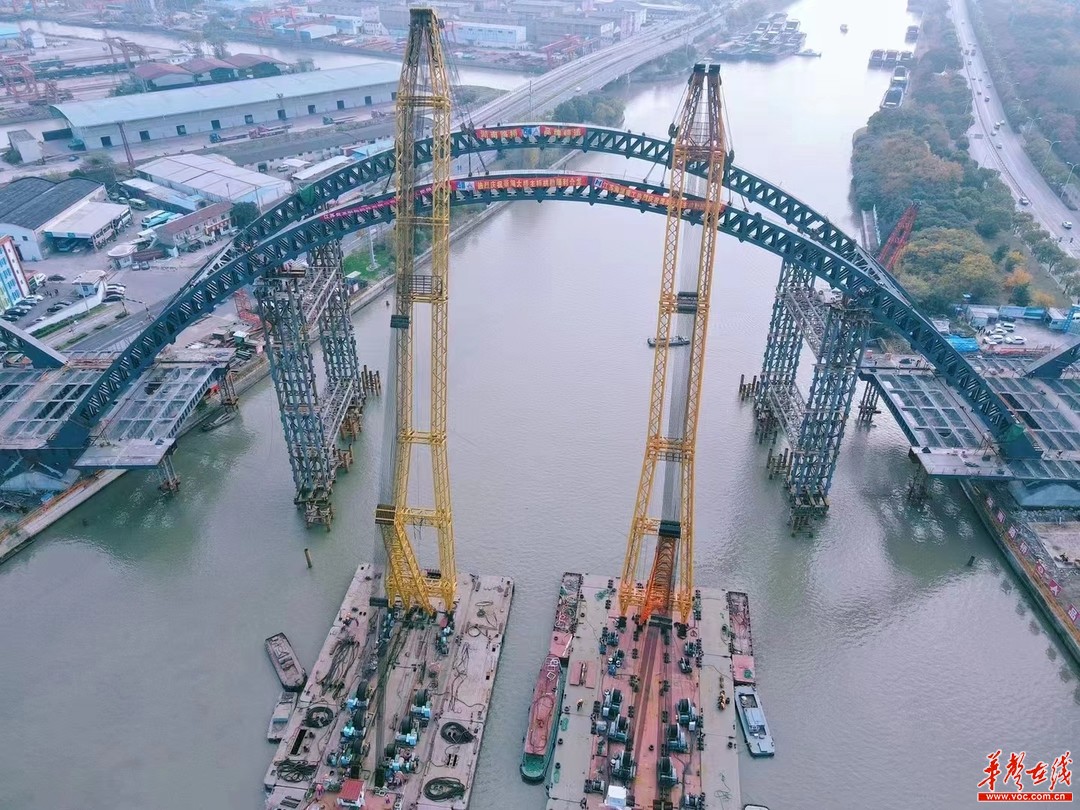 湖南日?qǐng)?bào)·華聲在線11月25日訊(通訊員 楊新湘 趙宇清)今天,由湖南建投集團(tuán)旗下湖南路橋承建的無(wú)錫菱湖大橋拱肋順利合龍。大橋主跨183米,是京杭大運(yùn)河無(wú)錫段跨度最大的橋梁,合龍拱長(zhǎng)101.3米,最大重量530噸,是京杭運(yùn)河上單次吊裝長(zhǎng)度最長(zhǎng)、重量最大的鋼桁架合龍拱節(jié)段。